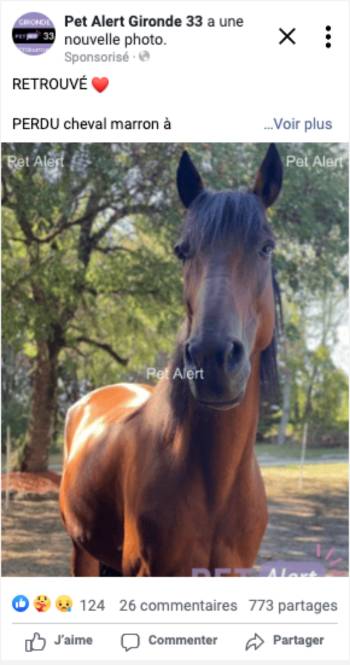 Nos équipes et notre communauté relaient ensuite votre annonce dans de nombreux groupes Facebook partenaires, pour maximiser la portée et multiplier les chances de retrouver votre animal.