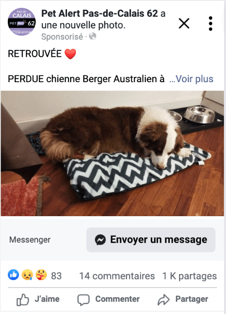 3,4 millions d’abonnés (hors groupes) + 160 millions d’impressions par mois = plus de chances de retrouver votre compagnon.